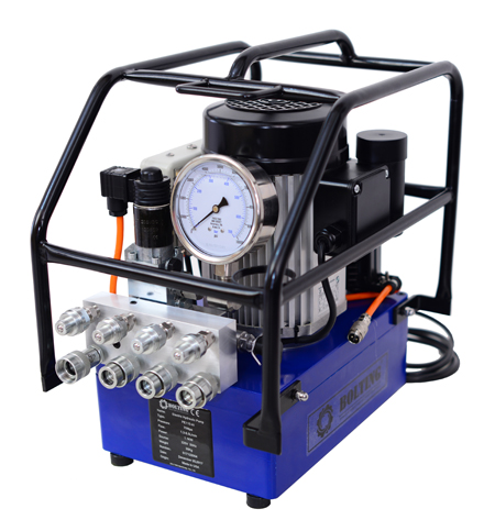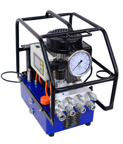 可選四接口分流器(型號加-4),允許多達四部液壓扳手同時使用,且輸出壓力均勻; |