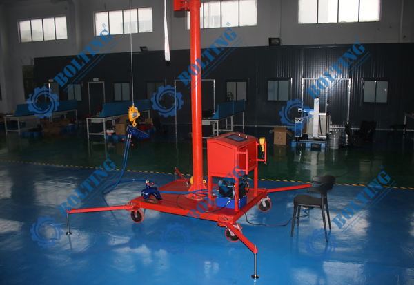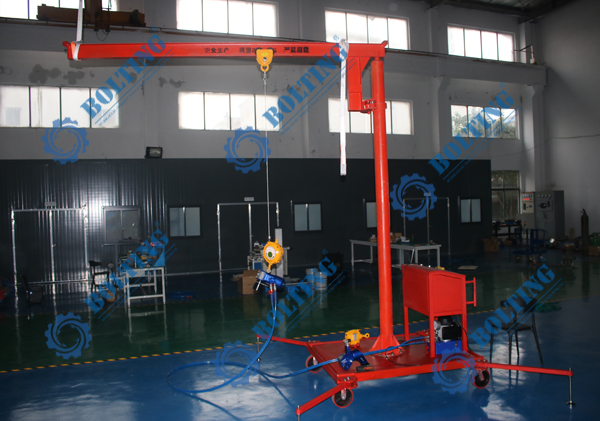 整體智能液壓泵與移動行車懸臂吊一體結合,方便移動與定位,減少占地空間,配備彈簧平衡器吊裝液壓扭矩扳手,解決使用人員長期工作時手提液壓扭矩扳手的疲勞情況,提高工作效率,減少勞動強度,且安全性十分可靠。