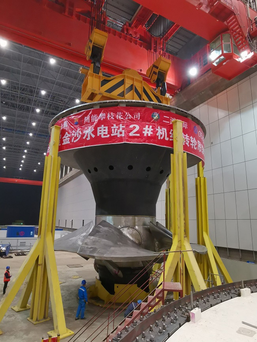 1月23日,由水電七局機電安裝分局承擔安裝任務的金沙水電站2號機組轉輪成功吊裝,向著4月2號機組發電目標邁出了關鍵性的一步。