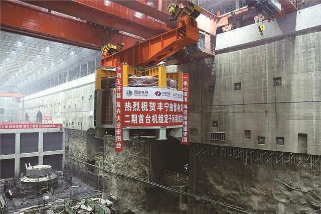 豐寧抽水蓄能電站二期首臺機組定子吊裝到位