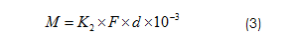 (3)式中:K2是擰緊力矩系數;F表示為預緊力,F為式(1)計算得到的;d為螺紋公稱直徑。