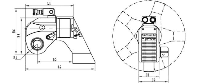 液壓扳手內部結構:液壓扳手內部結構是由反力臂、棘輪、棘爪、驅動軸、旋轉接頭構成。下面是液壓扳手的內部結構圖,供大家查看: