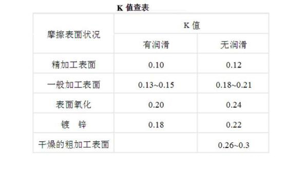已知扭矩 T和螺栓的公稱直徑 d,樓主要求的應該是軸向拉力 P, P=T/(K d)式中K—擰緊力系數,可查下表: