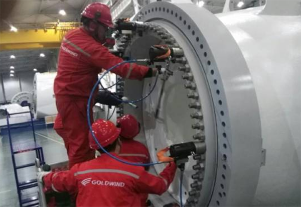 這也就是為什么在實際的風力發電機安裝過程中為什么要使用高精度的液壓扳手和風電專用螺栓拉伸器來嚴格按照要求施加預緊力預緊風機螺栓,避免因精度不足造成實際作用在螺栓上的預緊力過小導致螺栓實際壽命低于設計壽命。