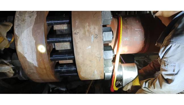 其實大型水輪機的很多位置也都是使用使用高強螺栓連接,像基礎環、座環、蝸売、尾水管排水盤形閥及其附件、蝸殼排水盤形閥及其附件機坑里襯底環、頂蓋、轉輪導葉及操作機構、接力器、主軸及密封、輪機導軸承大軸自然補氣裝置等。這些螺栓的安裝預緊之后需要經受住惡劣的運行環境,因此預緊力要求也是比較高。水輪機安裝預緊或者檢修做采用的螺栓預緊工具一般是以液壓螺栓拉伸器為主。液壓螺栓拉伸器軸向拉伸,螺栓上所加載的預緊力損耗較少,有效加載更多。但在一些特殊的位置,螺栓周圍空間特別小,只能使用薄型的中空液壓扳手來進行預緊拆卸。因此,水輪機的安裝檢維修既需要螺栓拉伸器也需要液壓扳手。